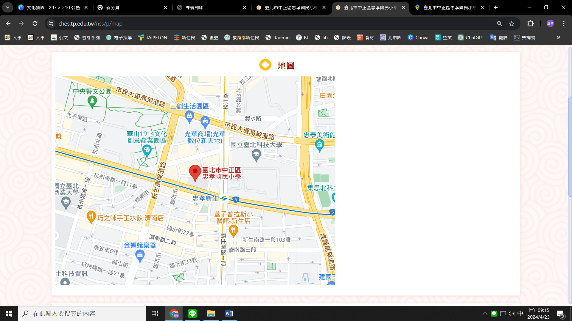 1. 臺北市忠孝國小地圖: